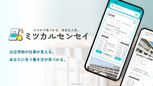公立学校の教員不足解消を目指す合同会社Quicken.(代表:小谷瑞季)は8月23日(金)より、地域の潜在教員**向け求人サイト「ミツカルセンセイ」を奈良県川西町、奈良県三宅町、兵庫県宝塚市で先行的にリリースいたします。