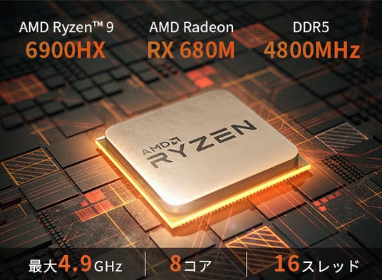 また内蔵されたグラフィックスは革新的な AMD RDNA 2アーキテクチャーを搭載したAMD Radeon RX 680Mで、グラフィックス周波数最大2400MHzのパワフルなグラフィックス体験を提供します。