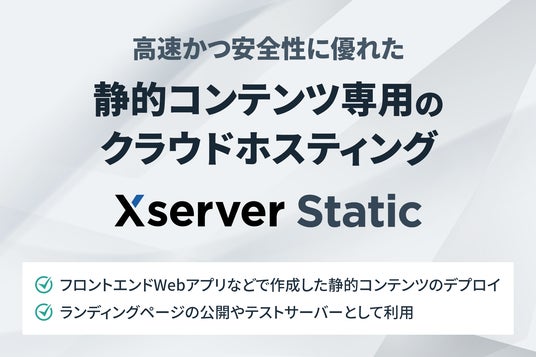 エックスサーバー株式会社、高速で安全なサーバー環境が無料で利用可能!静的コンテンツ専用クラウドホスティングサービス『Xserver Static』をリリース