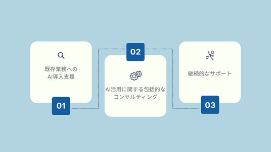 - 包括的なアプローチ:技術面だけでなく、経営戦略的な観点からもAI導入をサポート