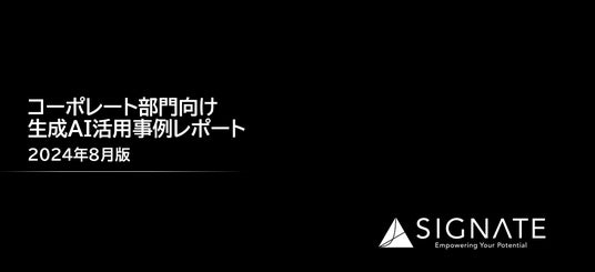 AI開発・運用やDX人材育成を手掛ける株式会社SIGNATE(本社:東京都千代田区、代表取締役社長:齊藤 秀、以下「SIGNATE」)は企業のコーポレート部門における生成AI導入・活用事例をまとめた最新レポート「コーポレート部門向け生成AI活用事例レポート」を公開しました。