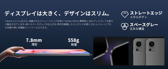 7.8mmにスリム化され、洗練されたストレートエッジを持つTeclast T60は、携帯性とMaxディスプレイを楽々と融合させています。深いスペースグレイの仕上げは、時代を超越したエレガンスを感じさせ、レジャーとプロの任務の時に多機能パートナーになります。