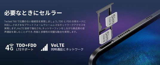 Teclast T60で比類のない接続性を実現しましょう。TDDとFDDの両モードに対応し、さまざまなプラットフォームでシームレスなネットワークアクセスを実現します。VoLTE技術で強化され、ネットサーフィンをしながら高品質の音声通話を楽しむことができ、性能と多様性の完璧な融合を実現します。