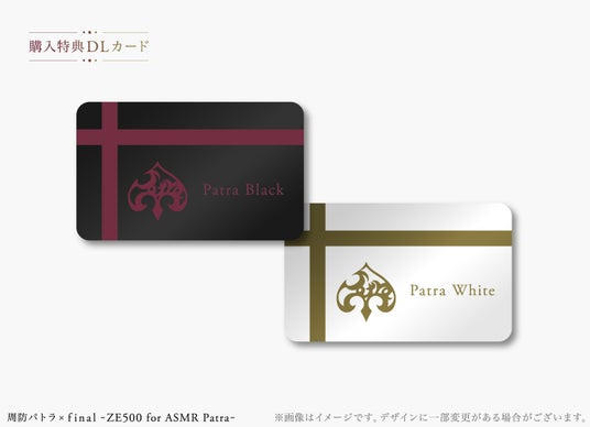 Patra BlackとPatra Whiteでそれぞれ異なる新収録「限定ASMR作品」&「限定描き下ろしイラスト」のダウンロードURL付き「購入特典DLカード」を同梱いたします。