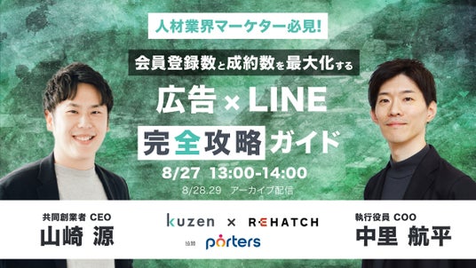 REHATCH株式会社(所在地:東京都千代田区、代表取締役 迫田亮太)は、人材業界における最新の広告手法に関するオンラインセミナー「人材業界マーケター必見!会員登録数と成約数を最大化する広告 x LINE 完全攻略ガイド」を開催いたします。