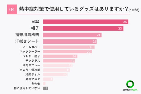 ・看護師の熱中症対策で使用しているグッズは「日傘」が最多