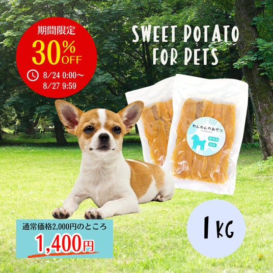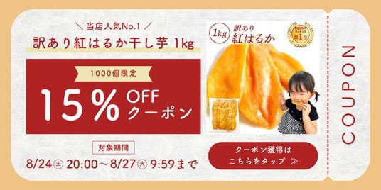 他にもお買い物マラソン中の8月24日(土)20:00~8月27日(火)9:59は『冷凍紅あずまの焼き芋』や、『さつまいも餃子』、『ワンちゃん用の干し芋』も大変お買い求め安くなっております。