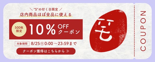また25日の5につく日にも24時間限定で10%OFFクーポンが発行されます。