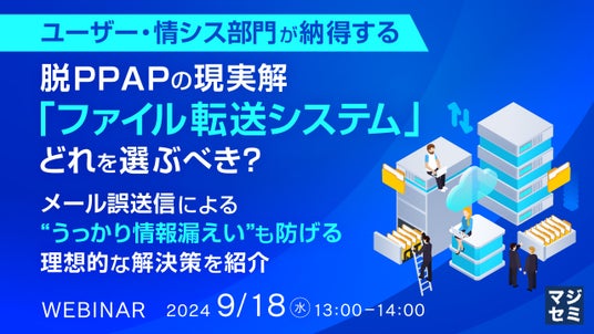マジセミ株式会社は『ユーザー・情シス部門が納得する脱PPAPの現実解「ファイル転送システム」、どれを選ぶべき?』というテーマのウェビナーを開催します。