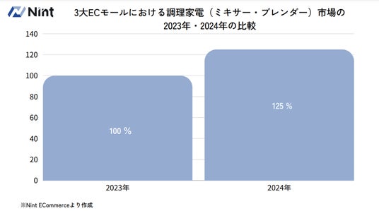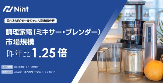「データの価値、人の可能性が輝く世界」をビジョンに、国内大手ECモールの市場動向データ分析ツール「Nint ECommerce」(https://www.nint.jp/ec/) を提供する株式会社Nint(本社:東京都新宿区、代表取締役:吉野順子 以下、「Nint」)は、2024年4~6月におけるECモールの調理家電(ミキサー・ブレンダ―)市場について調査いたしましたのでお知らせいたします。