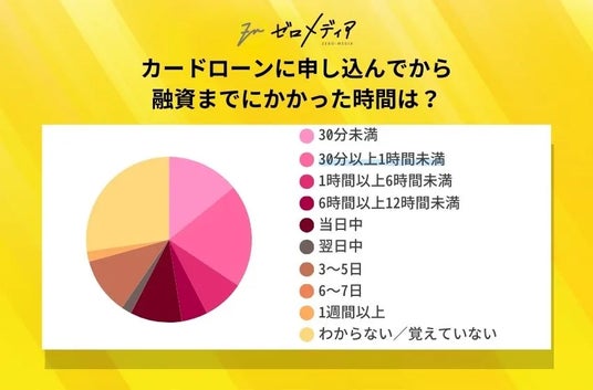 - カードローンの申し込みから融資までにかかった時間は、1時間未満が約半数。約8割は当日に融資を受けている。