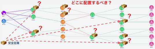 プッシュ型の需要予測の見込みに基づきあらかじめ在庫を貯めて準備しておく地点と、プル型のランダム性のある需要が発生した時点で消費される在庫地点の境界線となる通称デカップリングポイントの最適ロケーションを決定します。