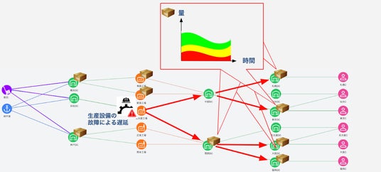(前述した)2つの供給リードタイム内の要素であるサービス時間と輸送時間に対して、過去データとAI予測に基づくデジタルツインのシミュレーションを活用し、常に先手が打てる確度が高い推奨施策を提供します。