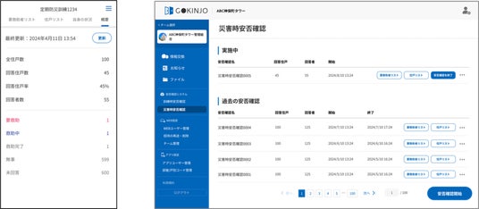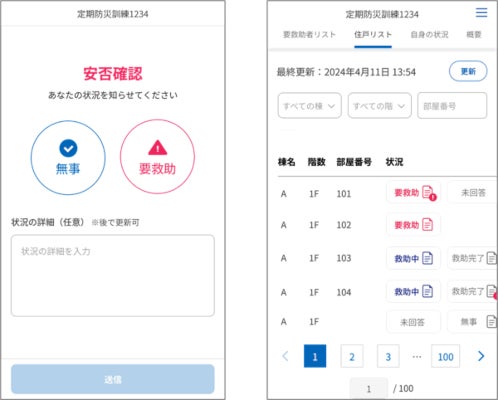 左)安否確認画面 右)回答状況リスト画面