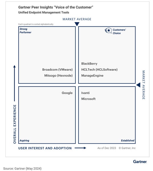[1]Gartner, Voice of the Customer for Unified Endpoint Management Tools, By Peer Contributors, 7 May 2024.
