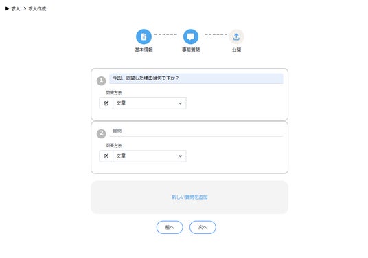 事前質問を設定できます。文章で質問し、文章で回答を得る仕様です。事前質問がない場合、設定の必要はありません。