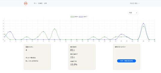 また、ホーム画面から求人一覧や求人作成、サポート問い合わせの画面にも移れます。