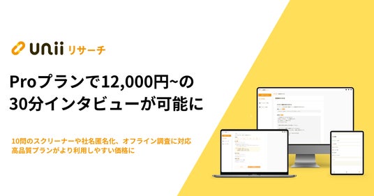 ユニーリサーチ、Proプランで12,000円~の30分インタビュー料金を新たにリリース!