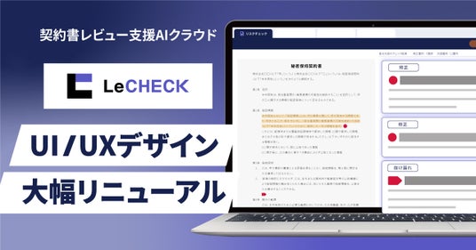 株式会社リセ(本社:東京都千代田区、代表取締役社長、弁護士(日本・米国NY州):藤田 美樹、 以下「リセ」)は、 契約書レビュー支援AIクラウド 「LeCHECK(リチェック)」のサービス画面のUI/UXを、9/27(金)に大幅にリニューアルします。