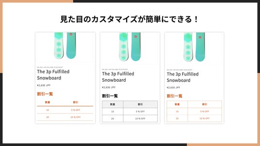 「シンプルボリュームディスカウント|お手軽まとめ買い割引」では、見た目のカスタマイズを簡単に行えます。