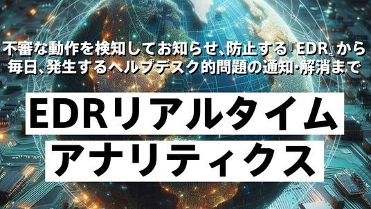 「EDRリアルタイムアナリティクス」は、不審な動作を素早く検知してお知らせ、防止する『EDR』としての機能から、毎日、大量に発生するヘルプデスク的な問題の解消・通知する機能まで持ち合わせています。そのため、どのような課題にも、いつでも、リアルタイムで対応でき、慢性的に人手不足となっている情報システム関係の大きな助けとなる製品です。