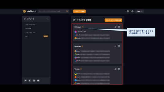 Web3の家計簿「defitact」、複数ウォレットアドレス管理機能を新たに追加
