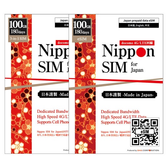 株式会社DHA Corporation (本社:東京都港区、代表取締役:鄧嘉堂・菊地華絵) は、これまで販売していた国内用プリペイドSIM最大容量プランの倍のデータ量である100GBを搭載した、Nippon SIM for Japan: 100GB180日を販売開始いたしました。種類はSIMカード版、eSIM版の2種類。共に、8月23日(金)よりビックカメラ、ヨドバシカメラの各店舗・同オンラインショップにて取り扱い開始しております。