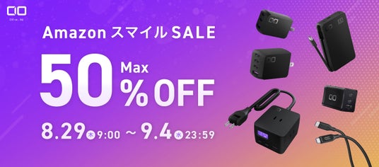 小型・高出力のモバイルバッテリー「SMARTCOBY」シリーズや、小型のGaN急速充電器「NovaPort」シリーズなどを展開する株式会社CIOは、Amazonで開催する「Amazon スマイル SALE」に、売れ筋人気製品や新商品を最大50%OFFにて販売いたします。