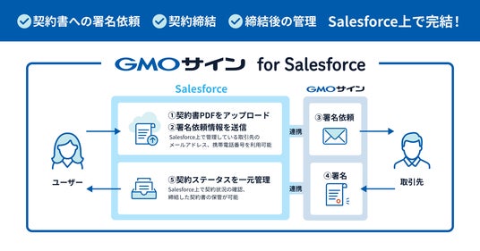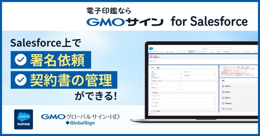 GMOグローバルサイン・ホールディングス株式会社(代表取締役社長:青山 満 以下、GMOグローバルサイン・HD)は2024年8月27日(火)、「Salesforce AppExchange」(※1)上でクラウド型電子契約サービス「電子印鑑GMOサイン」(以下、GMOサイン)と、クラウドベースのCRM/顧客管理・営業支援システムの「Salesforce(セールスフォース)」を連携させた専用アプリ「GMOサイン for Salesforce」を発表しました。