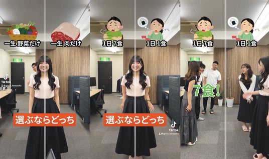 「食」に関する2択で社員を紹介する動画