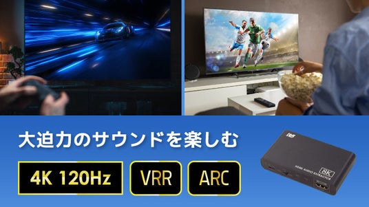 8K 60Hz・4K 120Hz・ARC対応のHDMIオーディオ分離器