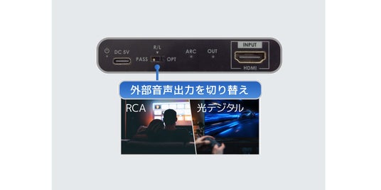 HDMI入力を持たないアンプやスピーカーに接続し、「ゲーム」「テレビ」「映画」などを大迫力のサウンドで楽しむことができます。