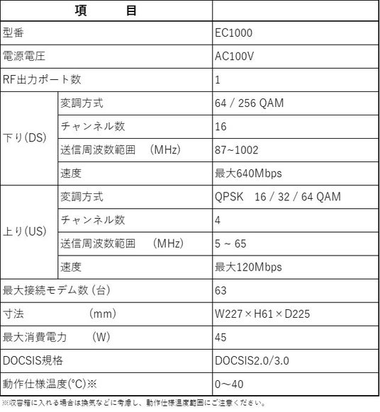 『EC1000』は、ケーブルテレビインターネットで長年培われた技術を棟内用にダウンサイジングした製品 で、建物内の既設テレビ共聴設備を使用して高速通信を行います。