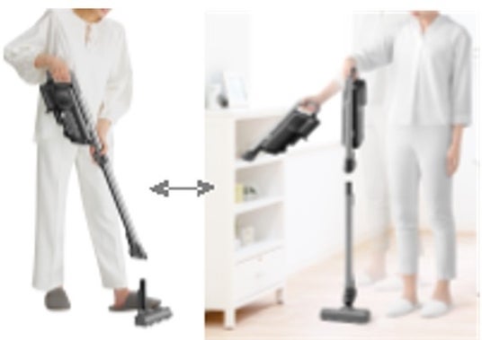 新スグトル構造パイプのレバーを引くだけで吸込口をカンタンに着脱でき、パイプが付いたままのヘッドも自立するので、床掃除から隙間掃除やハンディ掃除への切り替えがかがまずスムーズにできます。