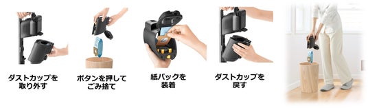 また、新しい紙パックの装着もラクに行え、 本体から外したダストカップはまるごと水洗いでき、いつでも清潔にお使いいただけます。