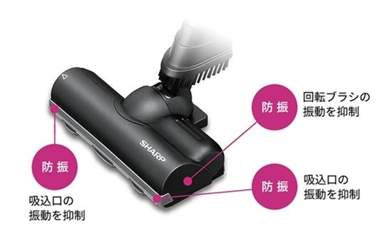 シャープ独自の低騒音化技術により、運転時に不快に感じる耳障りな音を抑制し、やさしい運転音を実現。さらに、オリジナルカラーの吸込口に加え、エアコン上部など高所の掃除に便利な「はたきノズル」を付属します。
