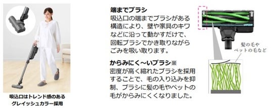 ■オリジナルカラーの吸込口は、壁や家具のキワごみもかきとる「端までブラシ」搭載