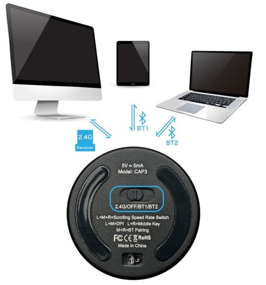 例えばメインのパソコンにレシーバーを設置し、サブ機はBluetooth1を、タブレットにはBluetooth2をそれぞれ割り当てておけば、必要なタイミングで瞬時にデバイス間の往来が可能になっていて、マルチデバイスユーザーの必需機能がまさにこの超小型マウスで実現されています。