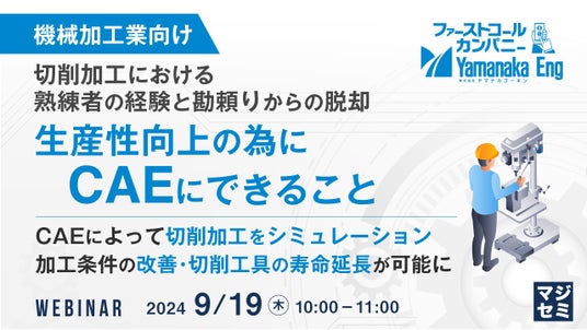 マジセミ株式会社は「【機械加工業向け】切削加工における熟練者の経験と勘頼りからの脱却生産性向上の為にCAEにできること」というテーマのウェビナーを開催します。