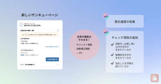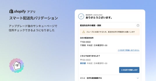 EC のフルフィルメントを支援する macaronwork 合同会社は、EC サイトで商品購入時、配送先住所に誤りがないかを自動でチェックする『スマート配送先バリデーション』にて、新しいサンキューページ(チェックアウト拡張機能)で利用できる、購入後バリデーションの新バージョンをリリースしました。