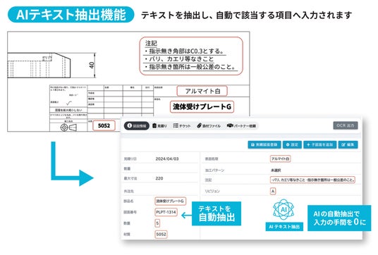 AIを活用した製造業向けクラウドサービス『SellBOT』の開発・提供を行う株式会社REVOXは、図面からテキストを自動で抽出・解析する「AIテキスト抽出・解析」機能に関する特許を取得したことをお知らせします。