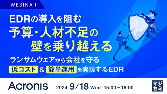 マジセミ株式会社は「EDRの導入を阻む予算・人材不足の壁を乗り越える」というテーマのウェビナーを開催します。