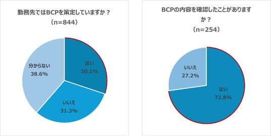 「勤務先ではBCP(事業継続計画)を策定していますか?」との質問に対し、「はい」30.1%だった。