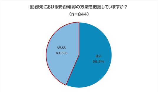 「勤務先における安否確認の方法を把握していますか?」との質問に対し、「いいえ」と回答した人が43.5%。