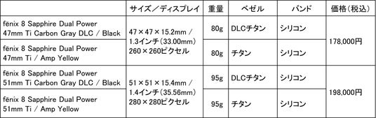 「fēnix 8 Sapphire Dual Power」シリーズ 2サイズ/4モデル