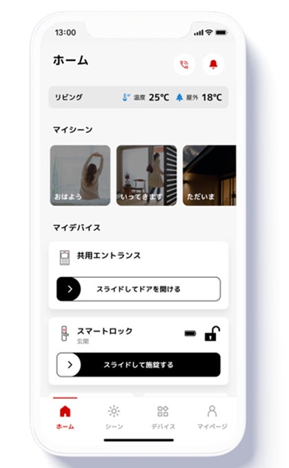 面倒な設定も不要で入居後すぐに利用を開始できる他、ロボット掃除機や音楽スピーカー、スマート照明といったお手持ちの機器との連携※4・5もでき、「シーン」機能を活用するとアプリのタップ操作やスマートスピーカーの声のワンアクションで、ライフスタイルにあわせたお好みの住空間を自由につくりだすことができるようになります。
