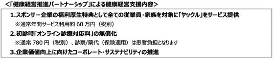 「ヤックル」は、生活習慣病やアレルギー性鼻炎などをスマホから夜22時まで予約不要の年中無休でオンライン保険診療が受けられるサービスで、企業課題と従業員が抱える通院負担や診療課題を解決するものです。今回の「健康経営推進パートナーシップ」により、沖縄県内外に広がる琉球アスティーダのスポンサー企業へスポンサー付帯の福利厚生特典として「ヤックル」を提供。琉球アスティーダとしては、県内外の企業の健康経営に貢献するとともに、企業価値向上に向けたコーポレート・サステナビリティの推進につなげることを目指します。