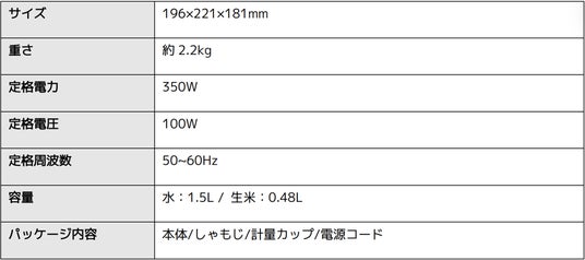 ■Xiaomi 多機能炊飯器1.5L のスペック概要