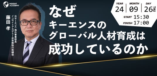 グローバル人材育成・研修業を手掛けるインサイトアカデミー株式会社(本社:東京都港区新橋、代表取締役:北村 嘉章)は、無料webセミナー「【なぜキーエンスのグローバル人材育成は成功しているのか】」を開催します。