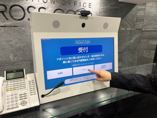 CROSSCOOPでは、各拠点に通常1~2名の受付スタッフを配置していました。しかし、オフィス設備の保全や休憩などで受付からスタッフが席を外すタイミングがあり、その際に受付にいらしたお客様へのご対応ができない状況でした。合わせて、新型コロナウイルスの流行や社会的な人手不足といった背景から世の中の働き方自体も多様化してきたため、「お客様の満足度を維持しつつスタッフが働きやすい環境の実現」を目指して、DXの検討を開始しました。